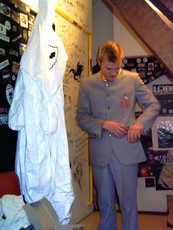 ![]() PÄIVÄKIRJA:::DESERT PLANET::: RANSKA 16.12-22.12.2003 [ TIISTAI ] [ KESKIVIIKKO ] [ TORSTAI ] [ PERJANTAI ] [ LAUANTAI ] [ SUNNUNTAI, MAANANTAI ] [ TAKAISIN DESERT PLANET -KOTISIVULLE ] KESKIVIIKKO 17.12. ( Klikkaa linkkejä, niin näet kuvia ) Heräsimme katuporaan iloiseen ääneen ja puhuhelinsoittoon. Jari soitti respasta ja kertoi tädin olevan kovin vihainen. Täti näytti meille silence tonight -lappua ja torui metelöinnistä. Lupasimme parantaa tapamme ja söimme aamiaisen croisanttien keralla. Tänään olisi keikka. La Lune des Pirates -klubi oli rantakadulla, jossa oli ravintoloita ja baareja. Julisteitakin näkyi katukuvassa. Klubi oli sisältä musta rokkiklubi, baarin puolelta näkyi telkkarista salin tapahtumat. Soundcheck oli puoli viideltä. Meille tehtiin valtava pöytä rumpuraiserista ja soundchekissä Gaeton kyseli kaikenlaista tietokoneistamme ja videoprojektorista. Menimme syömään Aavikon kanssa ravintolaan ja sen jälkeen valuimme keikkapaikalle. Takahuoneessa vertailimme asusteita. Aavikolla oli kultakauluksiset puvut, joiden kultaus oli leikattu kahvipaketeista. Miehillä oli rintapielissään vikkuvat valot, jotka saivat miehet näyttämään science fiction -elokuvan tähdiltä. Desert planet keikka meni hyvin. Ihmiset pitivät kuulemastaan ja Antin projisoimat videoklipit herättivät hilpeyttä. Keikan järjestäjä Fred halusi samaan kuvaan kanssamme ja kävimmekin ottamassa kuvia takapihalla avaruusasusteet päällä. Aavikon keikka oli tosi hyvä ja Siilinjärven spagettidisko veti ihmisiä tanssimaan. Aavikkoa tulivat katsomaan myös kansanmusiikkiyhtye Teuran tyypit, joiden luokse päädyimme jatkoille koko suomalaisremppa. Jatkoilla maistoimme pari lasillista viiniä ja ilta kului rattoisasti. Loppujen lopuksi poislähtiessämme päädyimme kyseisen hotellin aulaan ja yrittäessämme aukaista ulko-ovea hälyttimet rupesivat soimaan. Pälyilimme pelokkaasti ympärillemme kun toinenkin hälytin pärähti soimaan ja koko hotelli tuntui heräävän. Jatkojen isäntien olisi ehkä pitänyt tulla aukaisemaan ulko-ovi, mutta he taisivat olla jo lepäämässä. Ystävällisen henkilökunnan avulla pääsimme ulos Hotellista emmekä saaneet sen enempää hälytyksiä aikaan. [ TIISTAI ] [ KESKIVIIKKO ] [ TORSTAI ] [ PERJANTAI ] [ LAUANTAI ] [ SUNNUNTAI, MAANANTAI ] [ TAKAISIN DESERT PLANET -KOTISIVULLE ] |